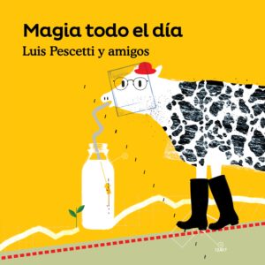 Magia todo el día (2018): En julio de 2017 se publicó el libro que lleva el mismo nombre, con “poemas que pueden ser canciones” y que, finalmente, lo fueron. Es un disco especial porque es bastante distinto de todos los anteriores. Grabado en estudio, cuenta con la colaboración de numerosos artistas entre los que se cuentan Mariana Baggio, Marta Gómez, Rita del Prado, Dúo Karma, Ainda Dúo y Juan Quintero. En este caso, Luis Pescetti optó por melodías con acompañamientos más ligeros e intimistas y también prescindió de las bromas. Un disco concebido como disco, para ser escuchado en casa, en familia, incluso por los más bebés de la casa.